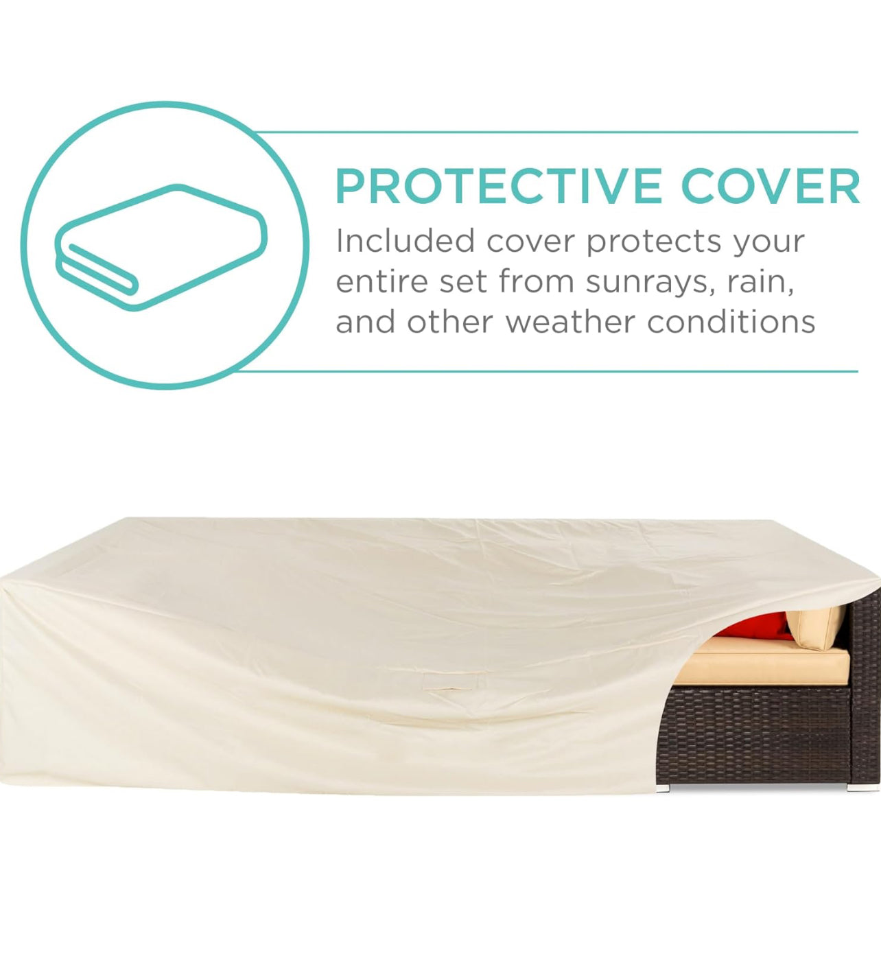 Juego de muebles modulares de mimbre para exteriores de 7 piezas. Color marrón cojines beige.