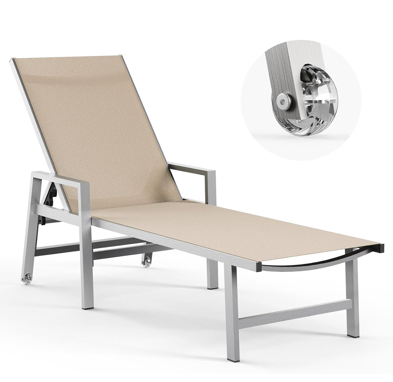 Pre- orden Tumbona para con ruedas y reposabrazos, sillas de aluminio reclinables ajustables de 5 posiciones. Color beige