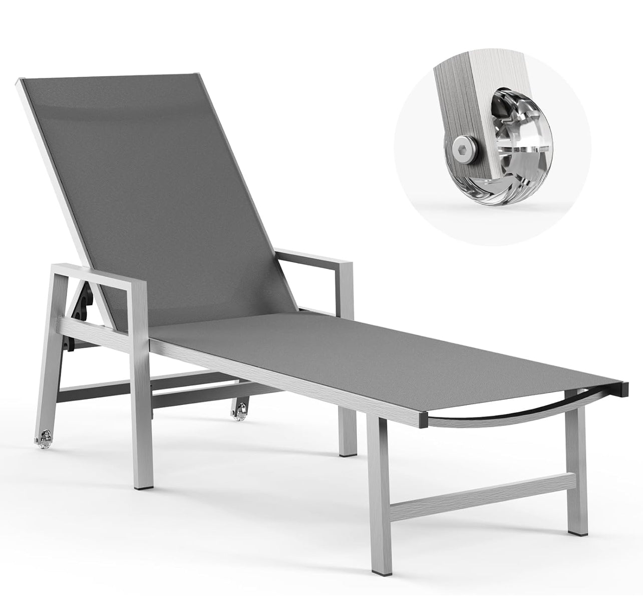 Pre- orden Tumbona para con ruedas y reposabrazos, sillas de aluminio reclinables ajustables de 5 posiciones. Color gris
