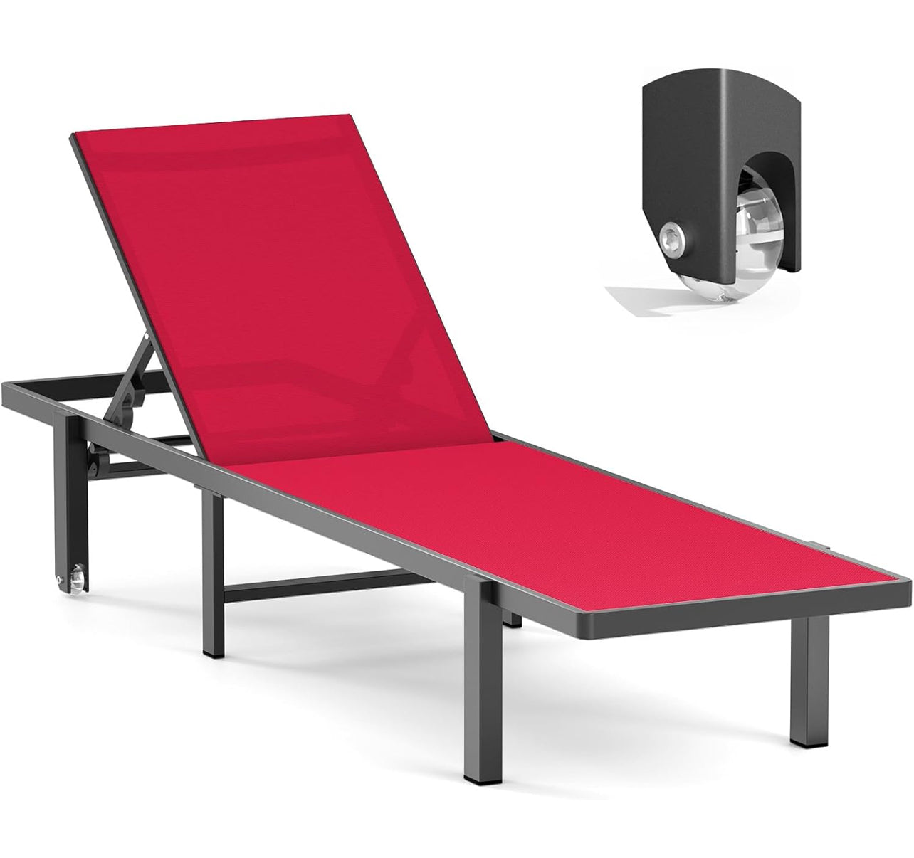 Pre- orden Tumbona para con ruedas y reposabrazos, sillas de aluminio reclinables ajustables de 5 posiciones. Color rojo