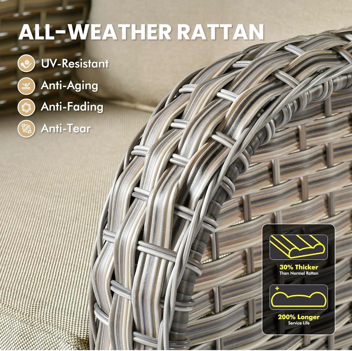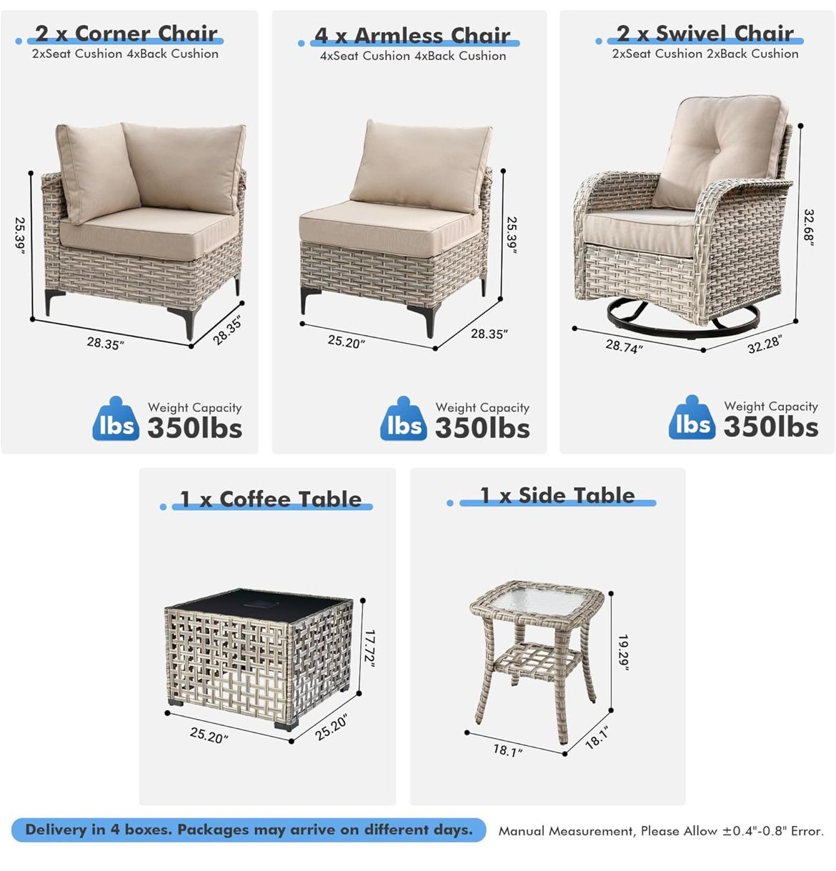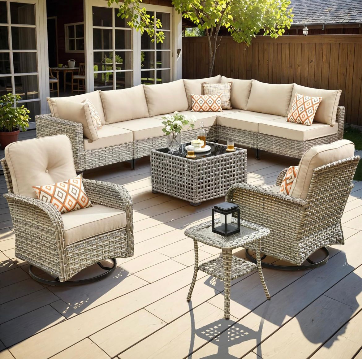 Juego de muebles seccionales de patio para exteriores con mecedoras giratorias, 10 piezas de mimbre en forma de L, sofá de puerta exterior, muebles exteriores.